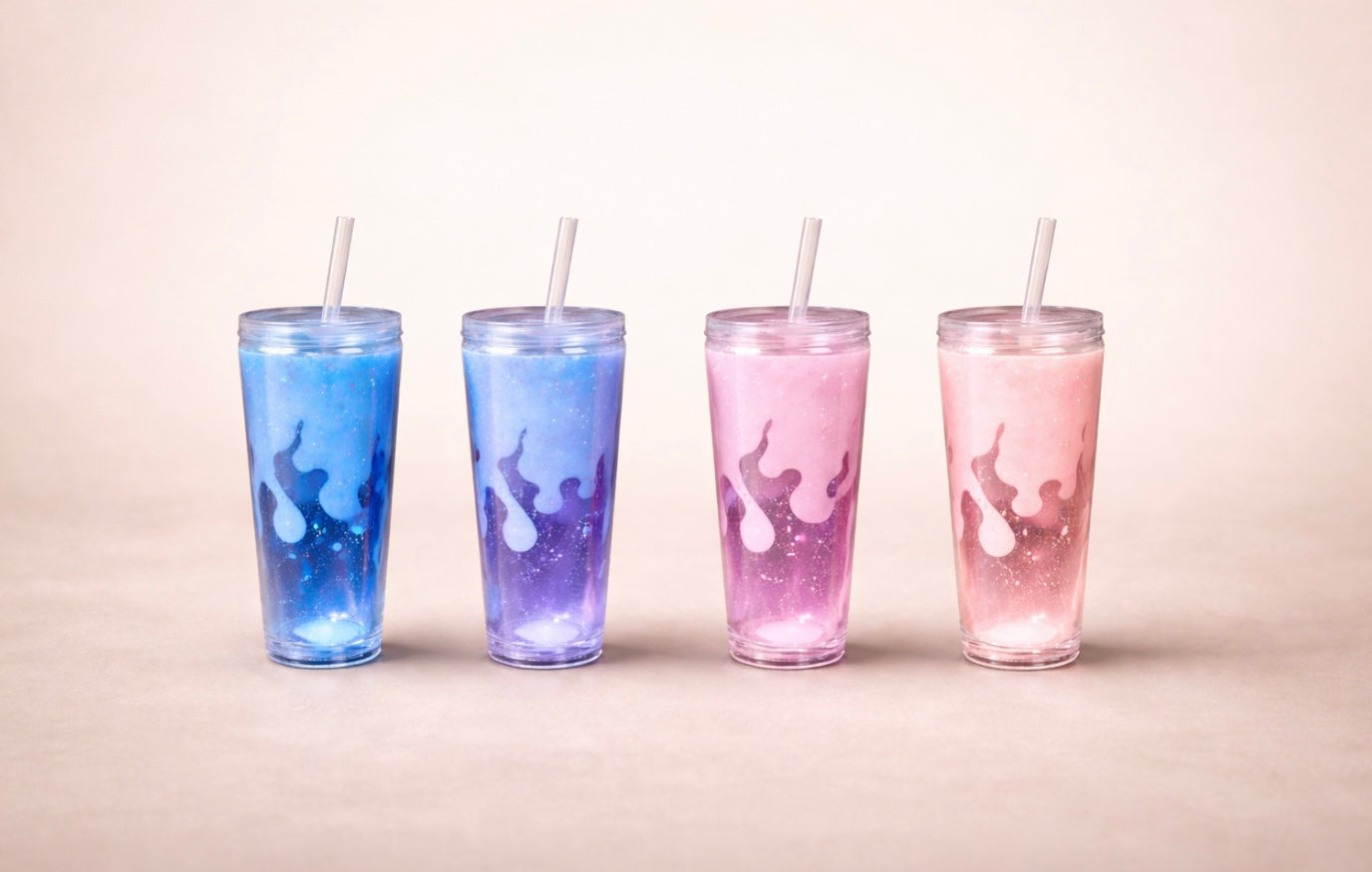 Wenn du einen doppelwandigen Becher gewählt hast, kommt optional noch Glitzer nach deiner Wahl hinzu.